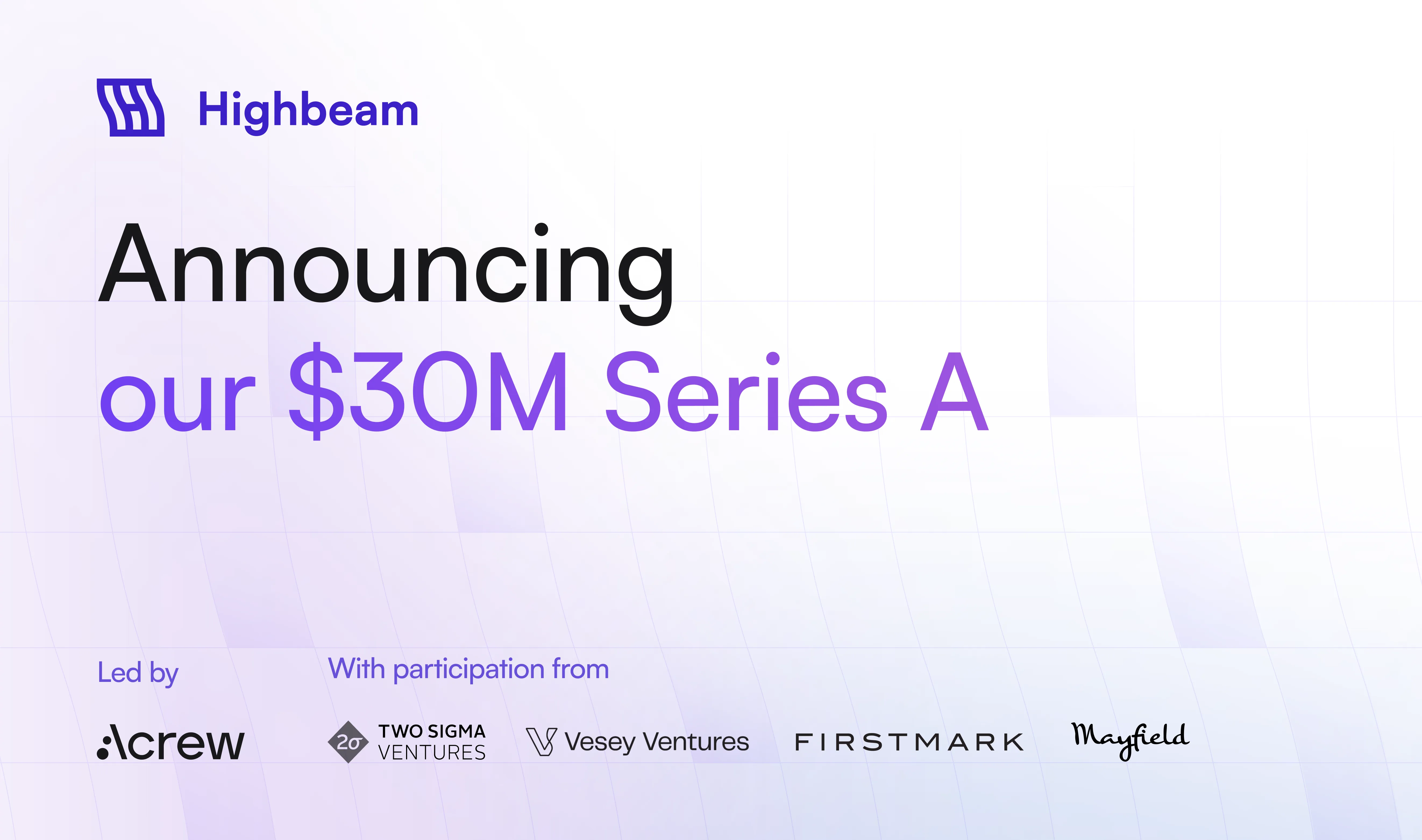 Today we’re announcing our $30 million Series A, led by Acrew Capital with participation from Two Sigma Ventures, Vesey Ventures, and our seed investors FirstMark and Mayfield.